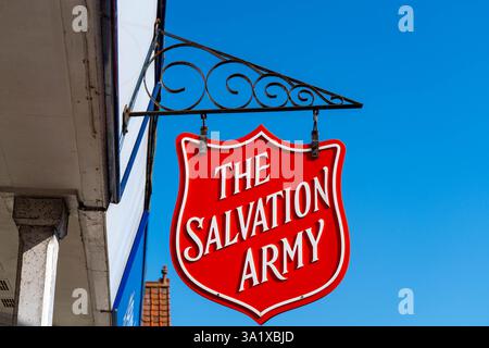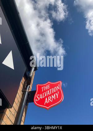 Logo et signe à l'extérieur de l'Armée du Salut à Bolton Lancashire Juillet 2020