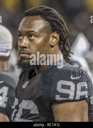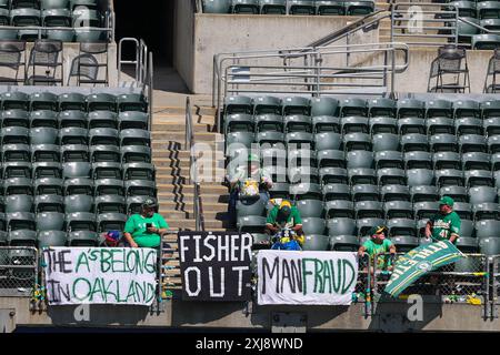 Oakland, Californie, USA. 15e Août, 2014. 15 août 2014 Oakland Raiders propriétaire Mark Davis parle à un ami avant de jeu commence le vendredi, Août 15, 2014, chez O.co Coliseum à Oakland, Californie. Les raiders battu les Lions 27-26 dans un match pré-saison. Crédit : Al Golub/ZUMA/Alamy Fil Live News