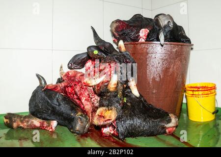 PILE DE TÊTES D'ANIMAUX après décapitation DANS L'ABATTOIR HORROR SCENE