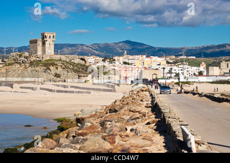 Tour de guet à Tarifa, le point le plus au sud de l'Europe continentale, Costa de la Luz, Cadix, Andalousie, espagne.