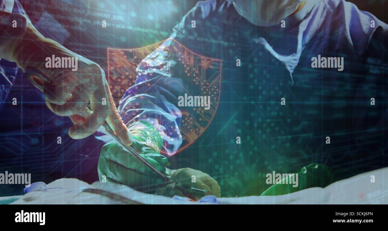 Mains gantées pratiquant l'incision en salle d'opération, avec scalpel, circuit et emblème de bouclier Banque D'Imageshttps://www.alamyimages.fr/image-license-details/?v=1https://www.alamyimages.fr/mains-gantees-pratiquant-l-incision-en-salle-d-operation-avec-scalpel-circuit-et-embleme-de-bouclier-image700493465.html