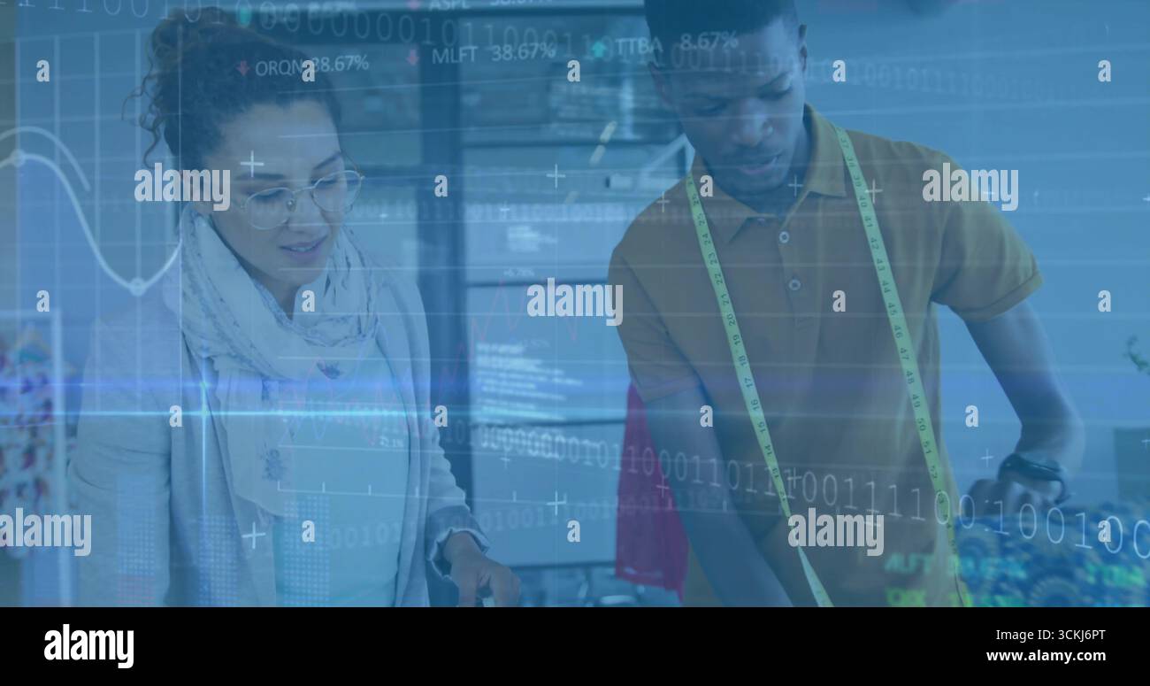 Collaborateurs de conception inspectant le prototype de vêtement dans un studio de design, avec des superpositions numériques Banque D'Imageshttps://www.alamyimages.fr/image-license-details/?v=1https://www.alamyimages.fr/collaborateurs-de-conception-inspectant-le-prototype-de-vetement-dans-un-studio-de-design-avec-des-superpositions-numeriques-image700493664.html