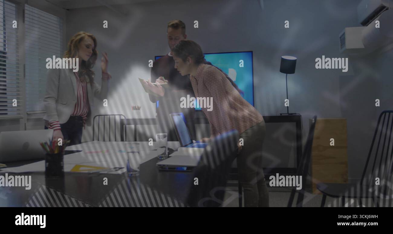 Les professionnels collaborant dans l'entreprise s'habillent autour d'un moniteur dans un bureau ouvert avec superposition de données Banque D'Imageshttps://www.alamyimages.fr/image-license-details/?v=1https://www.alamyimages.fr/les-professionnels-collaborant-dans-l-entreprise-s-habillent-autour-d-un-moniteur-dans-un-bureau-ouvert-avec-superposition-de-donnees-image700493394.html