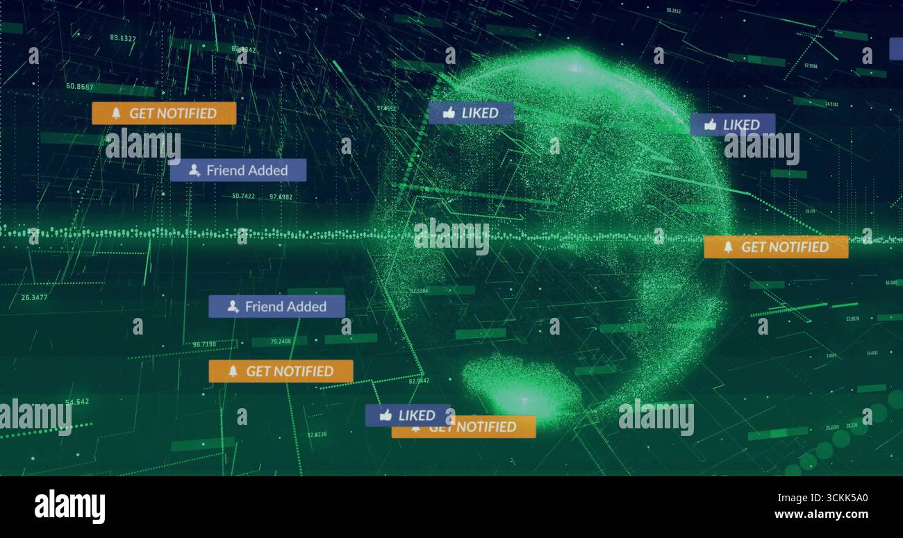 Globe en nuage de points vert tournant pulsé dans le hub du réseau, avec des badges de notification de médias sociaux Banque D'Imageshttps://www.alamyimages.fr/image-license-details/?v=1https://www.alamyimages.fr/globe-en-nuage-de-points-vert-tournant-pulse-dans-le-hub-du-reseau-avec-des-badges-de-notification-de-medias-sociaux-image700514472.html