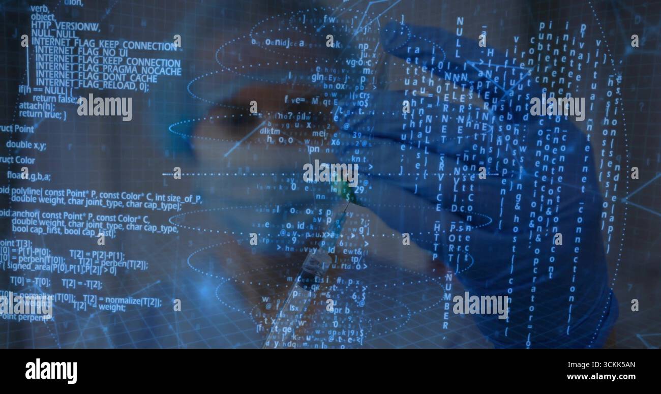 Scientifique examinant portant une blouse de laboratoire tenant un tube à essai en laboratoire, avec des flux de code holographique Banque D'Imageshttps://www.alamyimages.fr/image-license-details/?v=1https://www.alamyimages.fr/scientifique-examinant-portant-une-blouse-de-laboratoire-tenant-un-tube-a-essai-en-laboratoire-avec-des-flux-de-code-holographique-image700514493.html