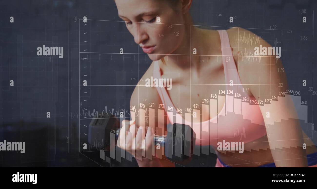 Femme portant un soutien-gorge de sport rose, leggings curling haltère en studio, montrant des superpositions de données flottantes Banque D'Imageshttps://www.alamyimages.fr/image-license-details/?v=1https://www.alamyimages.fr/femme-portant-un-soutien-gorge-de-sport-rose-leggings-curling-haltere-en-studio-montrant-des-superpositions-de-donnees-flottantes-image700514502.html
