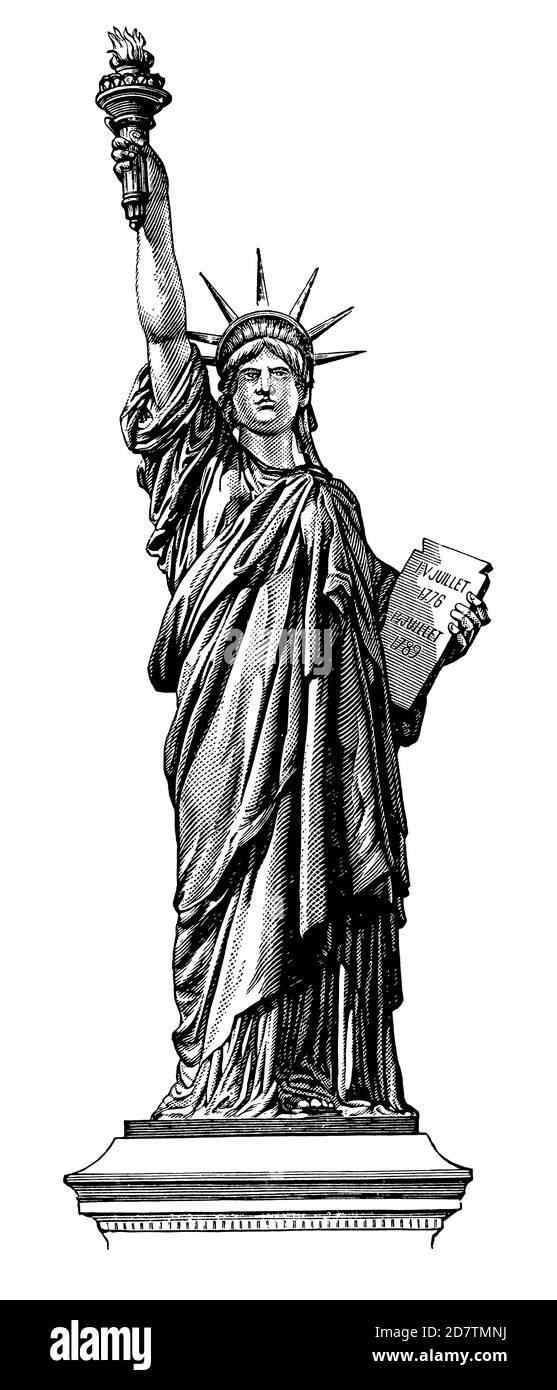 Statue de la liberté, New York Etats-Unis (gravure en noir et blanc) Banque D'Imageshttps://www.alamyimages.fr/image-license-details/?v=1https://www.alamyimages.fr/statue-de-la-liberte-new-york-etats-unis-gravure-en-noir-et-blanc-image383473822.html
