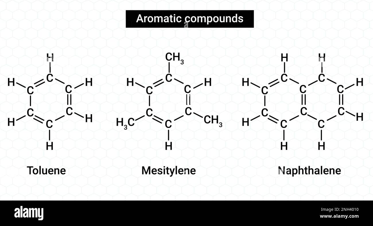 Composés aromatiques : toluène, mésitylène et naphtalène Illustration de Vecteurhttps://www.alamyimages.fr/image-license-details/?v=1https://www.alamyimages.fr/composes-aromatiques-toluene-mesitylene-et-naphtalene-image526848028.html