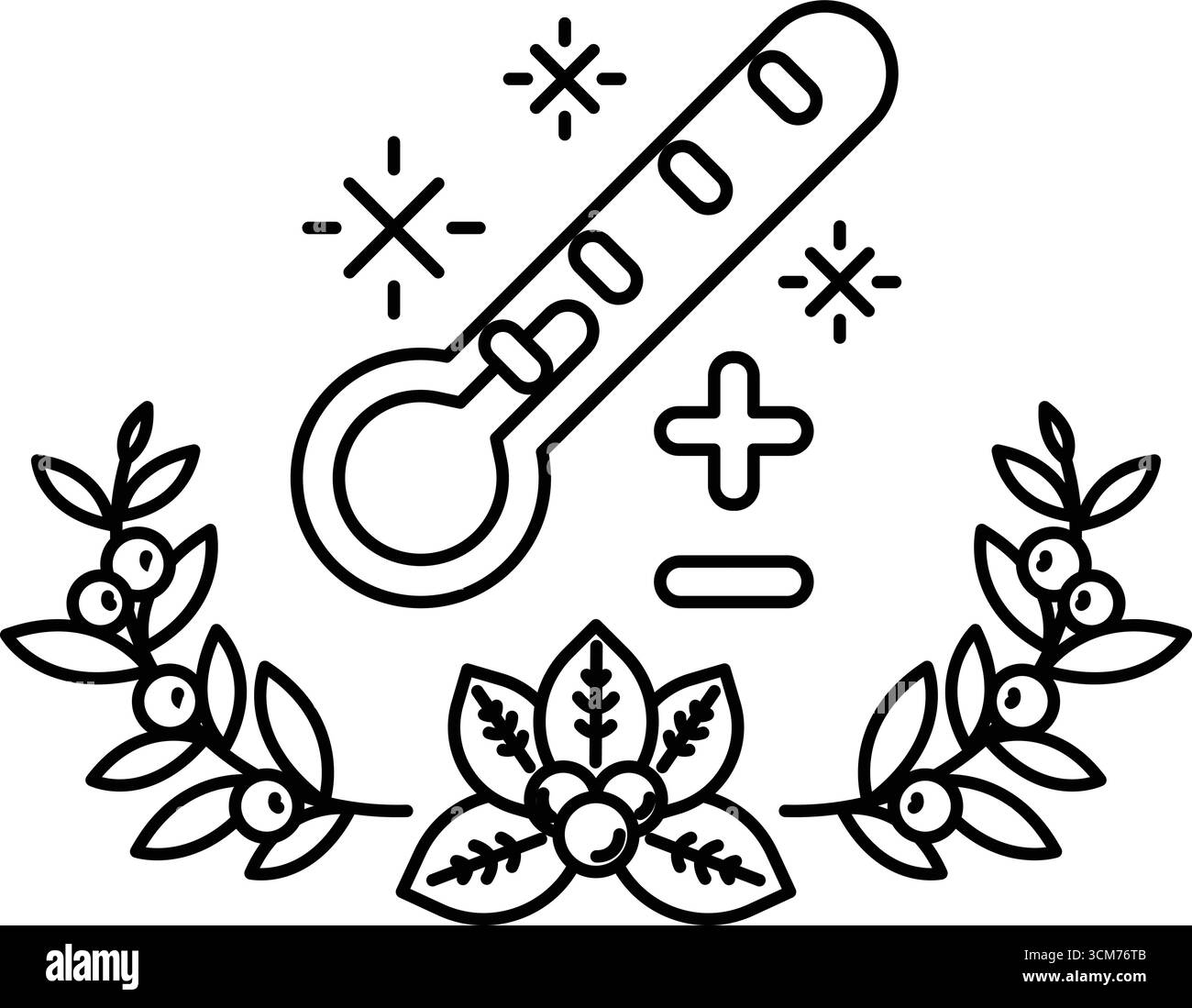Un thermomètre est montré avec une fleur et des feuilles qui l'entourent. Le thermomètre est bleu et rouge, et la fleur et les feuilles sont vertes. Concept de Warmt Illustration de Vecteurhttps://www.alamyimages.fr/image-license-details/?v=1https://www.alamyimages.fr/un-thermometre-est-montre-avec-une-fleur-et-des-feuilles-qui-l-entourent-le-thermometre-est-bleu-et-rouge-et-la-fleur-et-les-feuilles-sont-vertes-concept-de-warmt-image700866891.html