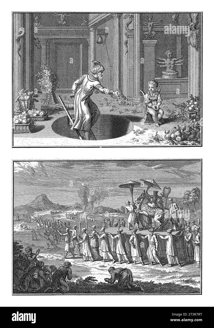 Représentations des coutumes religieuses de l'Inde, Bernard Picart (atelier de), 1723 feuille avec deux représentations des pratiques religieuses de l'Inde. Banque D'Imageshttps://www.alamyimages.fr/image-license-details/?v=1https://www.alamyimages.fr/representations-des-coutumes-religieuses-de-l-inde-bernard-picart-atelier-de-1723-feuille-avec-deux-representations-des-pratiques-religieuses-de-l-inde-image570295593.html