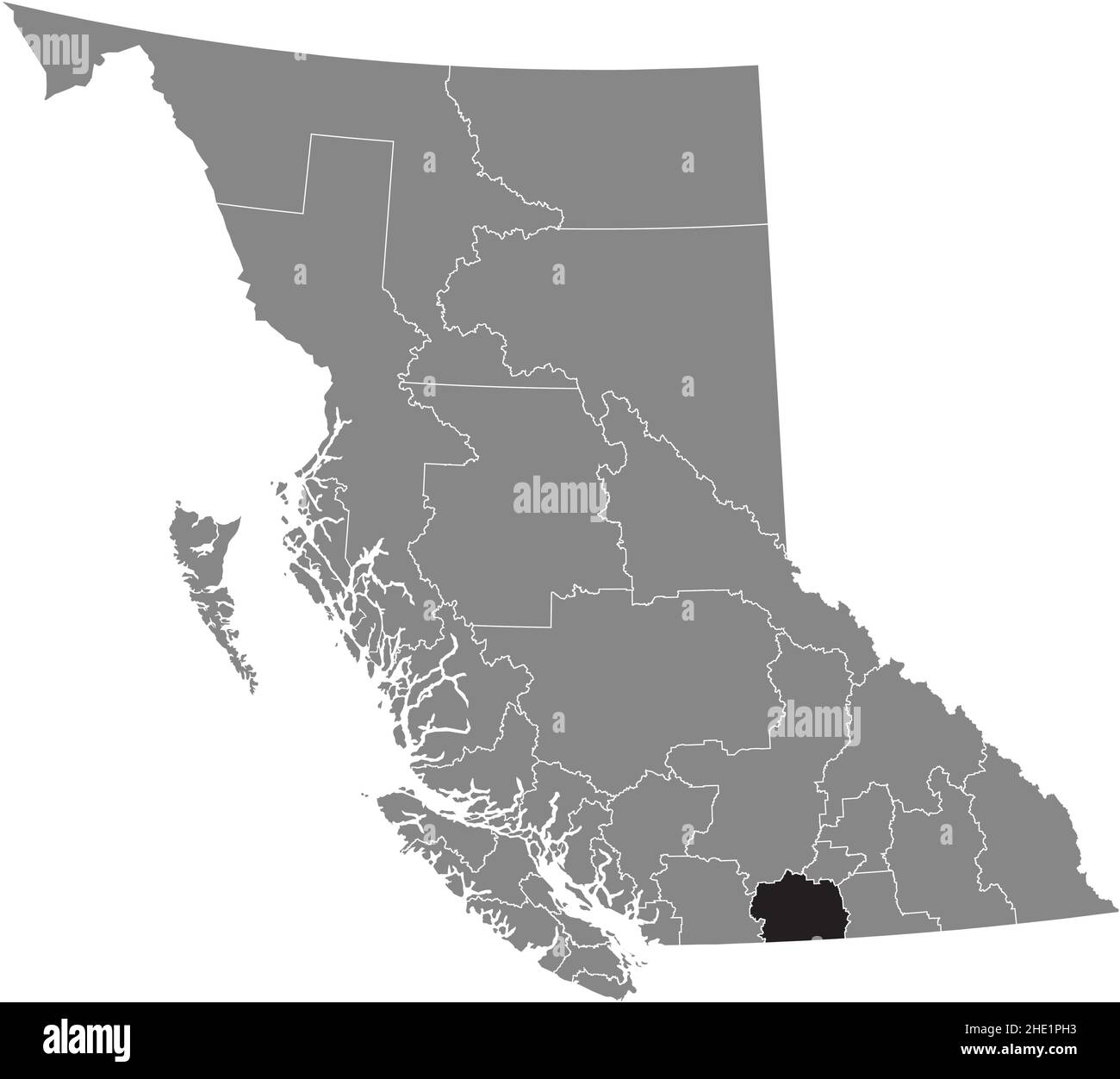 Carte d'emplacement en noir à blanc mise en évidence du district régional DE KOOTENAY À l'intérieur de la carte administrative grise de la province canadienne de Britis Illustration de Vecteurhttps://www.alamyimages.fr/image-license-details/?v=1https://www.alamyimages.fr/carte-d-emplacement-en-noir-a-blanc-mise-en-evidence-du-district-regional-de-kootenay-a-l-interieur-de-la-carte-administrative-grise-de-la-province-canadienne-de-britis-image456114211.html