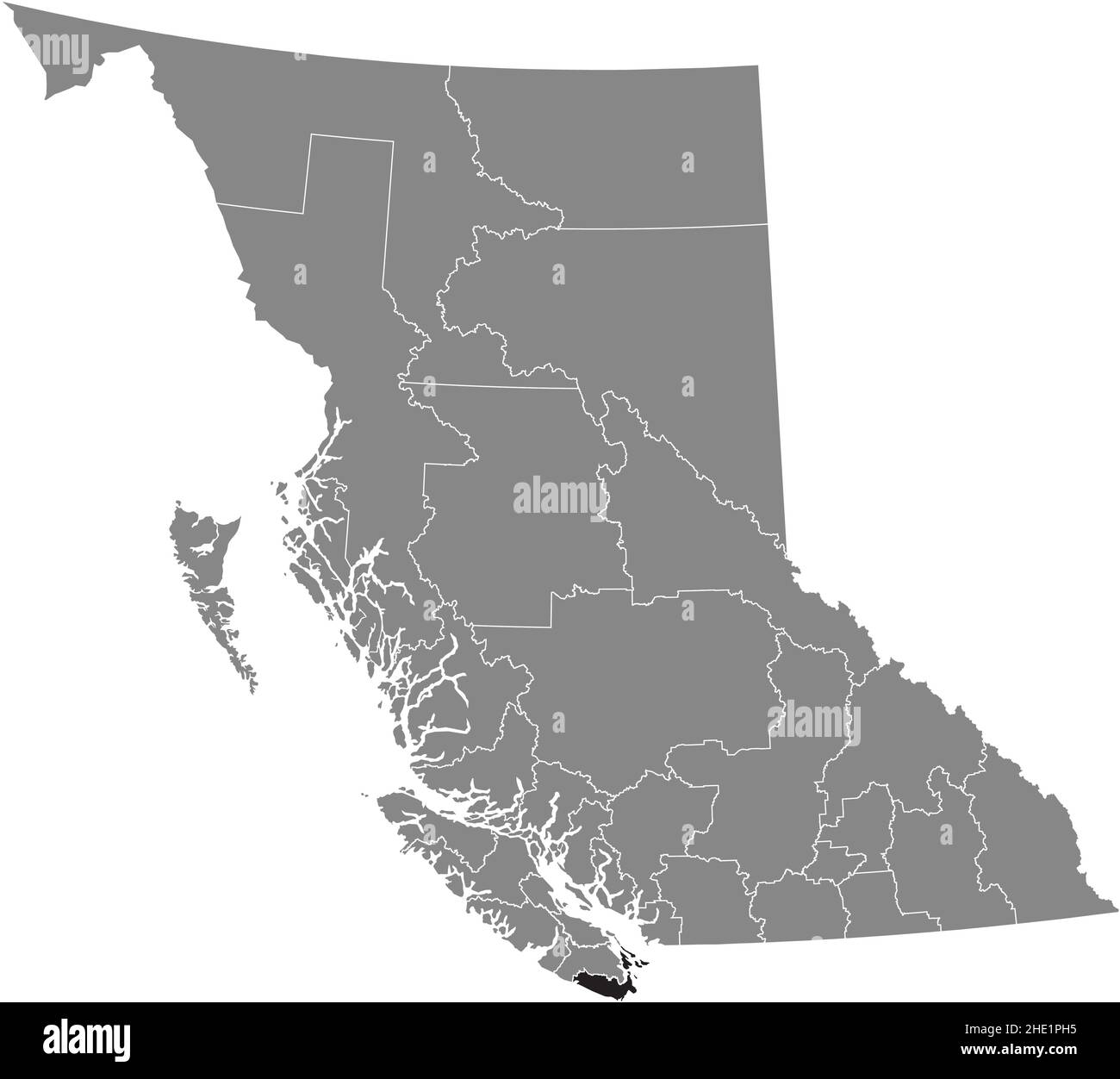 Carte administrative vectorielle vierge et plate grise de la province canadienne de LA COLOMBIE-BRITANNIQUE, CANADA, avec lignes de bordure blanches de ses districts régionaux Illustration de Vecteurhttps://www.alamyimages.fr/image-license-details/?v=1https://www.alamyimages.fr/carte-administrative-vectorielle-vierge-et-plate-grise-de-la-province-canadienne-de-la-colombie-britannique-canada-avec-lignes-de-bordure-blanches-de-ses-districts-regionaux-image456114333.html