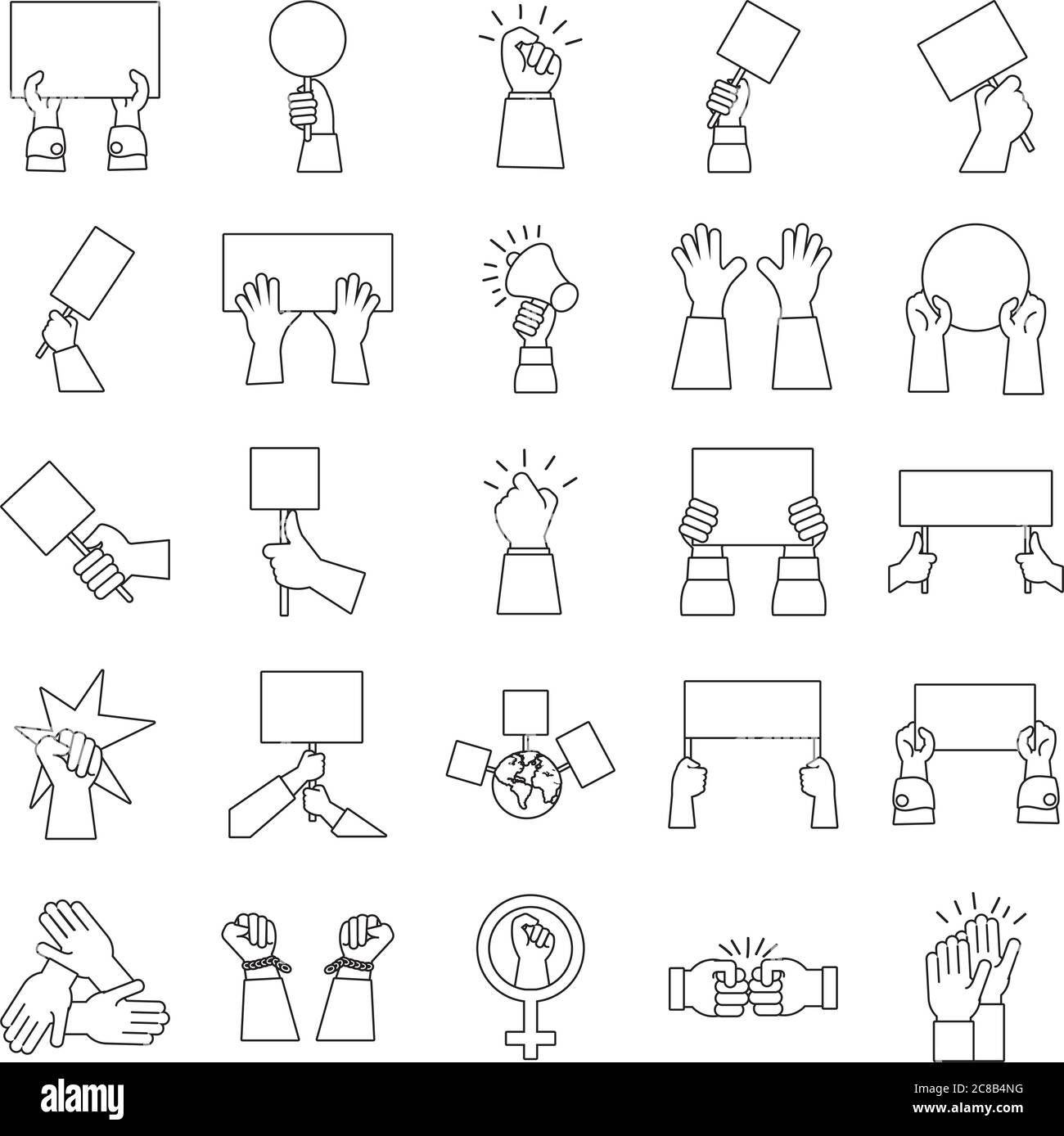 ensemble de vingt-cinq symboles de la collection de jeux de protestation illustration vectorielle conception Illustration de Vecteurhttps://www.alamyimages.fr/image-license-details/?v=1https://www.alamyimages.fr/ensemble-de-vingt-cinq-symboles-de-la-collection-de-jeux-de-protestation-illustration-vectorielle-conception-image369443222.html