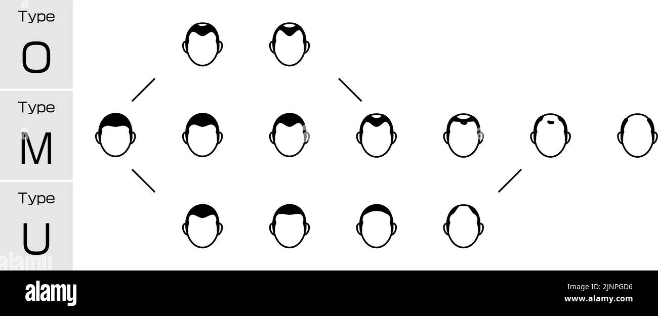 Illustration de chaque type d'alopécie androgénétique AGA et stade de progrès Illustration de Vecteurhttps://www.alamyimages.fr/image-license-details/?v=1https://www.alamyimages.fr/illustration-de-chaque-type-d-alopecie-androgenetique-aga-et-stade-de-progres-image478083570.html