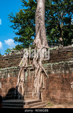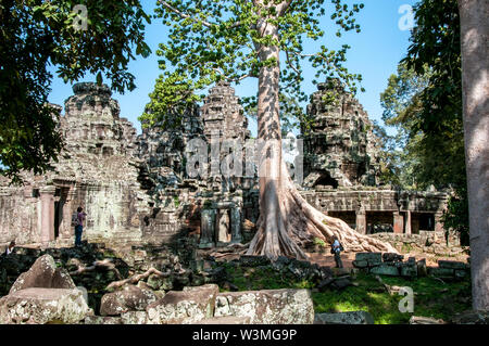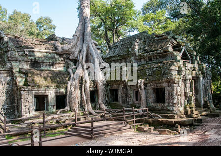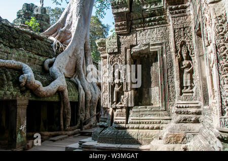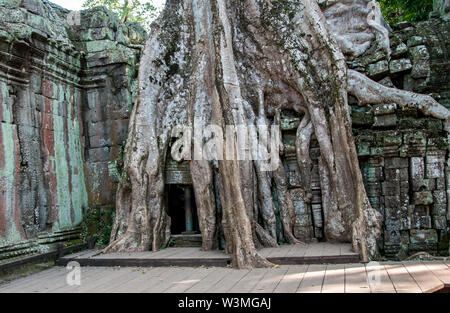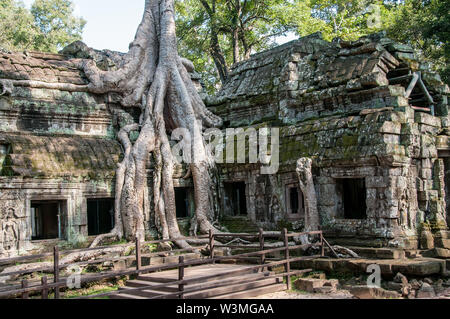 Racines spectaculaires parmi les pierres dans le temple de Ta Prohm à Angkor Wat